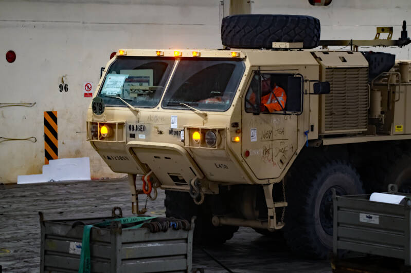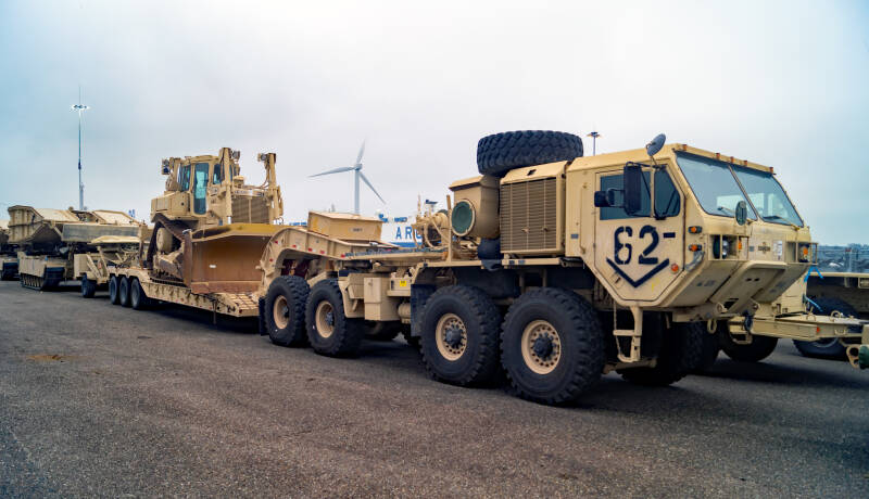 Every 9 months the rotation exercise Atlantic Resolve takes place, during this exercise a brigade ((Armoured) Brigade Combat Team, (A)bct) is rotated. While one brigade goes back to the US a new brigade arrives in various ports in Europe. This time a number of ships were unloaded in both Vlissingen and Eemshaven. It was the first time in more than 20 years that American equipment was unloaded in Eemshaven. The last time it was loaded. While in Vlissingen tanks and Bradley fighting vehicles were unloaded in addition to other rolling stock. In Eemshaven mainly engineering equipment was unloaded.